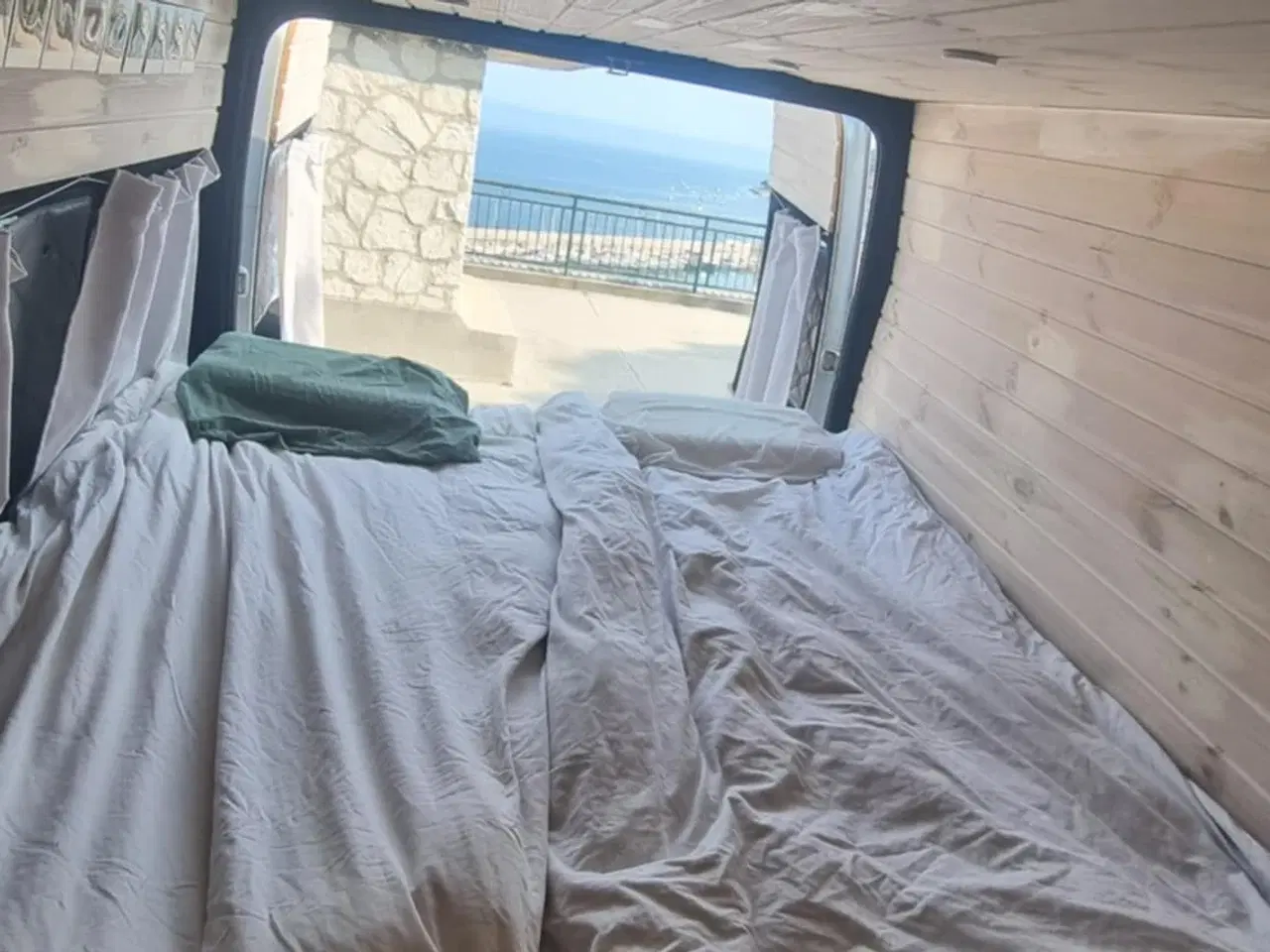 Selvforsynende campervan – Ford Transit 300M 2.0 TDI (2001) Pris: 157.500 kr. Km-stand: ca. 220.700 km Indregistreret personbil (hvide plader) Bilens længde: ca. 5,5m. Kan være i normal p-bås Ståhøjde i bilen: mellem 170cm-175cm Afleveres nysynet Klar til overtagelse omkring 1. august Denne campervan er bygget til dig, der elsker friheden ved at sove i naturen eller parkere præcis hvor du har lyst. Bilen er fuldstændig selvforsynende på strøm og indeholder alt, hvad du skal bruge til både kortere og længere ture året rundt. Strøm og teknik: 2x Tesla lithium-moduler – estimeret samlet kapacitet ca. 10 kWh 300W solpaneler Victron MPPT 100|50 sol-lader Victron Orion-Tr SMART 12|12 – 30 DC/DC-lader Green Cell 3000W/6000W ren sinus inverter Usina 120Ah batterilader 3x 230V stik Udtag til landstrøm LED-loftlys (dæmpbart med fjernbetjening) Gasalarm og røgalarm Komfort og udstyr i bodelen: Lyfco aircondition (fjernbetjent) - fungerer også som varmepumpe. Elektrisk markise (fjernbetjent) 1852 Marine Quality 65W køleskab med fryser Primus gaskomfur (portabelt) Boxio håndvask – nem at rengøre, ingen vandrør Udtrækkeligt udekøkken Opbevaring i bænke, over førerkabine, køkkenskabe og skuffer 2 campingstole og 1 campingbord 2x 20L vanddunke og 1x 10L dunk med taphane Gardiner i hele bodel Bagagerum Centrallås Radio med Bluetooth Isolering og støjdæmpning: 1–3 lag 32 mm Armaflex i vægge og loft 40 mm flamingoplade i gulvet Støjdæmpende bitumenplader med isolerende folie Modelleret bitumen og isolering i begge skærmkasser Varme: Dieselfyr installeret til kabinevarme. Ikke i drift i øjeblikket. Kan muligvis repareres. Reparationer udført januar 2025: 2 nye hjullejesæt 2 nye pakdåser i differentiale Nyt vandrør 2 nye bremseskiver Nye bremseklodser 2 nye bremsekalibre (højre og venstre forhjul) Ny termostat Ny turboslange 4 nye helårsdæk Tekniske oplysninger: Totalvægt: 2.950 kg Egenvægt: 2.200 kg Vægtafgift: 10.580 kr. halvårligt