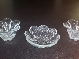 Lysestagen er i massivt klart glas, så den vejer en del. Lysestagen kan bruges til både fyrfadslys og de tykke lys Diameter: 10 cm Højde: 4 cm Som ny