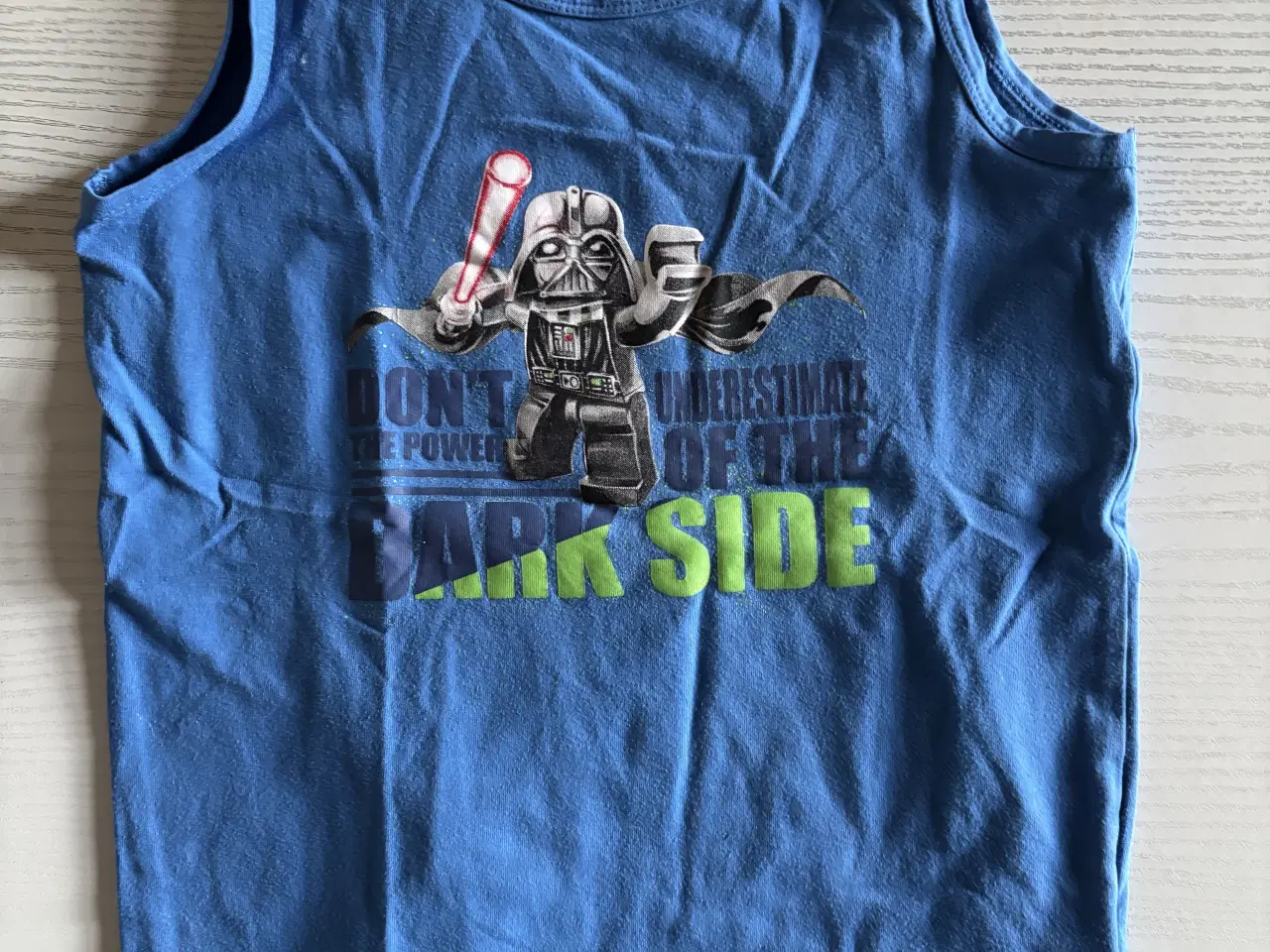 1 stk. sort bluse med rund hals og lange ærmer, har motiv med REBELS på forstykket 1 stk. blå bluse uden ærmer, med figur på forstykket. Er pæn og i orden Samlet pris Sender gerne mod betaling af porto