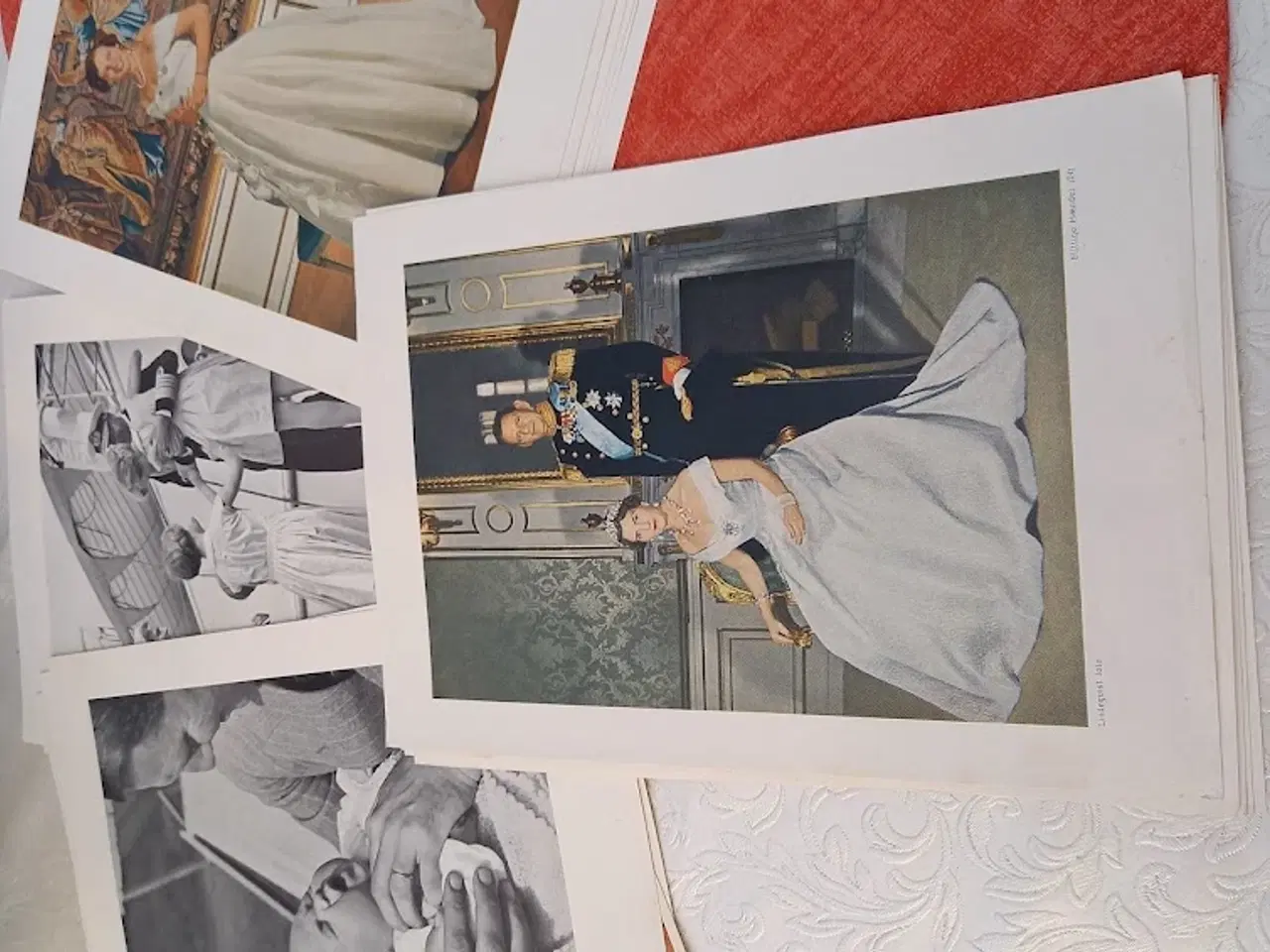 Billedkavalkade over noget af Kong Frederik og Dronning Ingrids liv. Billederne har været tillæg i ugebladet Flittige Hænder 1950 - 60erne. Billederne er i fin stand. Sælges samlet og kan, mod betaling, sendes. Der er 24 stk + to ekstra.