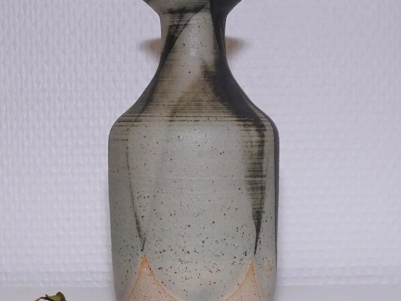 Spændende stentøjsvase af keramiker Britta Jespersgaard på Thyholm. Vasen er fra Britta Jespersgaards eget keramikværksted Brittas Keramik. Signeret i bunden: Britta Thyholm Vasen er i perfekt stand - ingen afslag, revner, ridser eller lignende. Vasen er 15 cm. høj og 8 cm. i diameter. Vægt: 420 gram. Sender gerne - Fragten tillægges varens pris. Mobilepay, kontanter og bankoverførsel modtages.