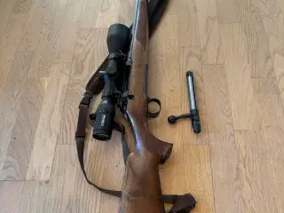 Ny pris gr liggetid. Mauser 225. Kaliber er 6,5 x 55. Pris uden kikkert og montage. Med kikkert og montage kr 7.000- Forberedt til dæmper (M14x1) og bagerst kærv fjernet for at gøre plads til lav montage af kikkert. Af samme årsag er pibe ny bruneret. Den er flot. Bøssemager siger om pibe, fin stand. Og senere er aftræk renset/efterset og indstillet til 1,3 kg, igen af samme bøssemager. Den er selvfølgelig ikke ny, men i god stand. Låsen er med 3 låseknaster og går silkeblødt, jeg har ikke oplevet bedre ! Jeg er selv fan af Tikka og Sako, men låsegangen på disse gode rifler matcher ikke denne østrigske/tyske præcision. Jeg startede selv med Cal. 308, men idag er kal 6,5x55 min absolut foretrukne. Lovlig til al dansk vildt. Jeg foretrækker den gr behagelig rekyl, dvs mere træning og jeg bliver bedre skytte, rigtig god dæmpning med lyddæmper. Kikkerten, Delta Titanium hd 2,5-15 x 50 med lys. Jeg har selv købt den fra ny. Søg gerne på den, det er virkelig en kikkert, der giver værdi for pengene. Jeg har selv lavet en simpel skumringstest op imod min Swarovski, og en Nikon Monarch. Og der performer den godt. Den er indskudt med Sako Blade. Jeg sælger uden dæmper, men er du interesseret i en dæmper, så sig til. Jeg bor i Sønderjylland men er regelmæssig i Nordjylland.