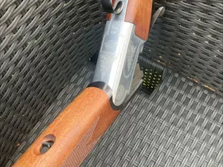 Mossberg Maverick 88 12/76 71cm. Pumpgun. Super holdbar og simpel skydemaskine til det grove arbejde. Har kun skudt 4-5 skud siden den forlod butikken. Geværet er plomberet til to patroner hos bøssemager. Jeg sælger den fordi jeg ikke får den brugt.