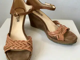 Superflotte og klassiske sko i skind med hæl - kun prøvet på / str 39,5 Den indvendige længde er 25,5 cm, hælen er 3,5 cm høj, det bredeste sted er 8 cm Bud fra kr 500 plus porto Afhentning: København, Østerbro
