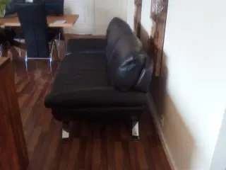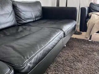 Cognacfarvet kernelæder sofa og stor puf af mærket Engell (dansk)