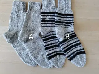 De er alle strikket i strømpegarn med 75% uld og kan maskinvaskes på 30 grader uldprogram. De passe alle str 38/40, og prisen er pr par. Se også gerne mine andre annoncer bl.a også strømper i andre størrelser