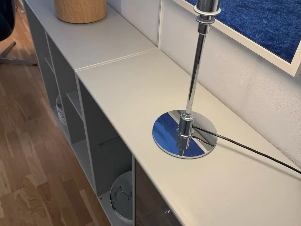 Smukt Montana modul/reol Med 1 stor glaslåge, 2 glashylder og 2 normale hylder. Farve: Nordic Stand: Fin med få brugsspor på den ene top. Ophæng medfølger Mål pr modul: Højde - 70 Længde - 70 Dyb - 30 Samlet pris 3700