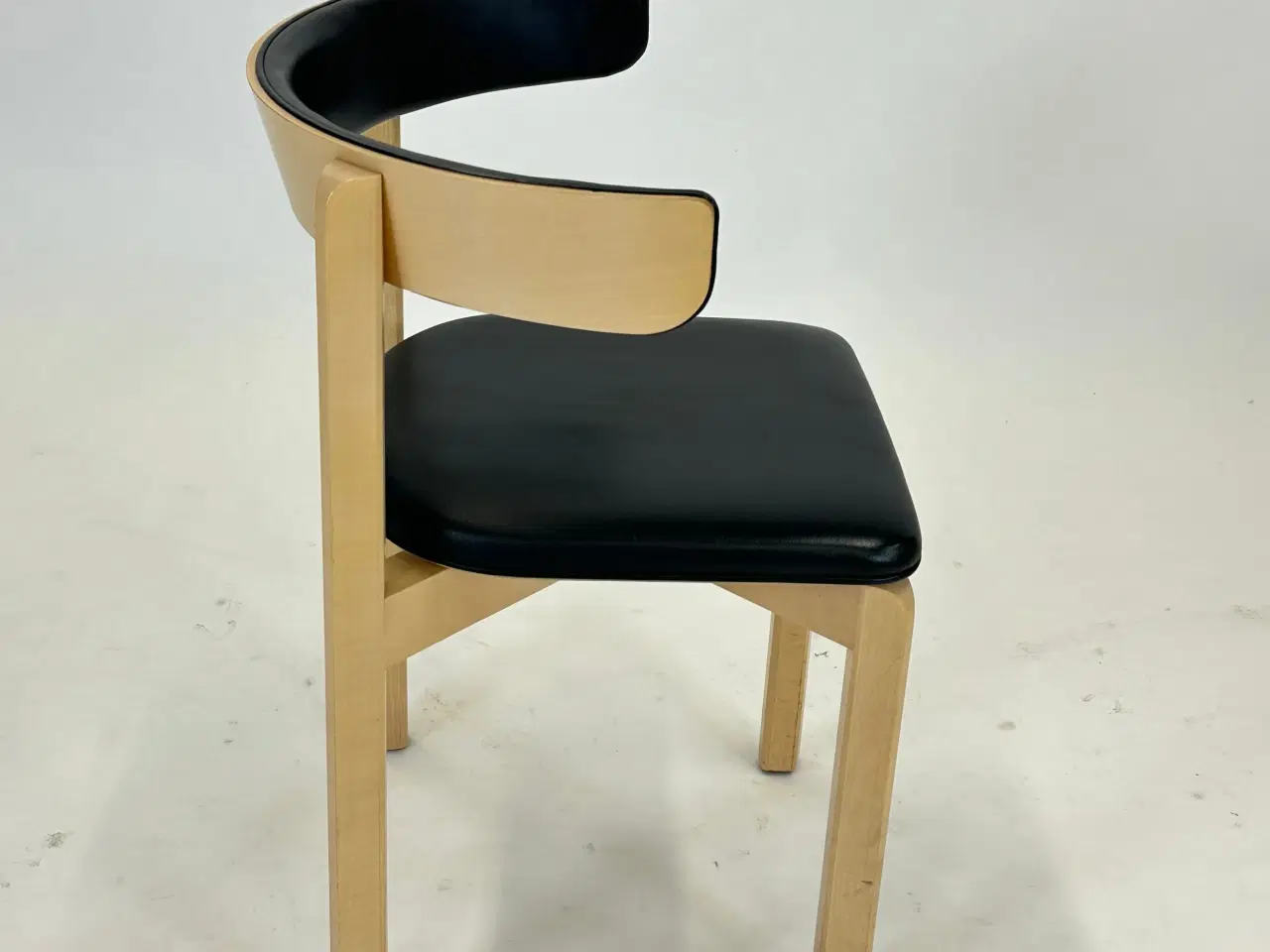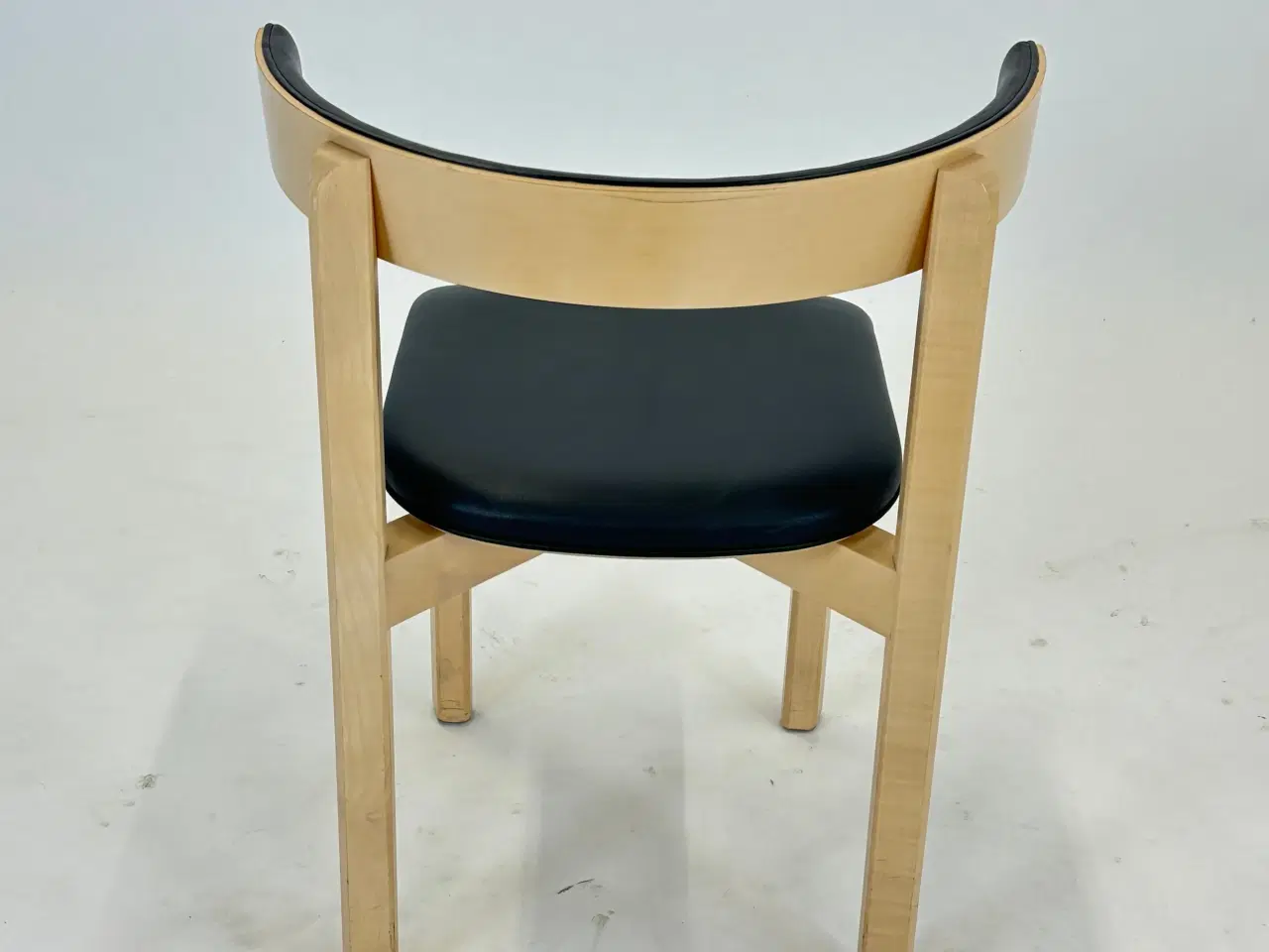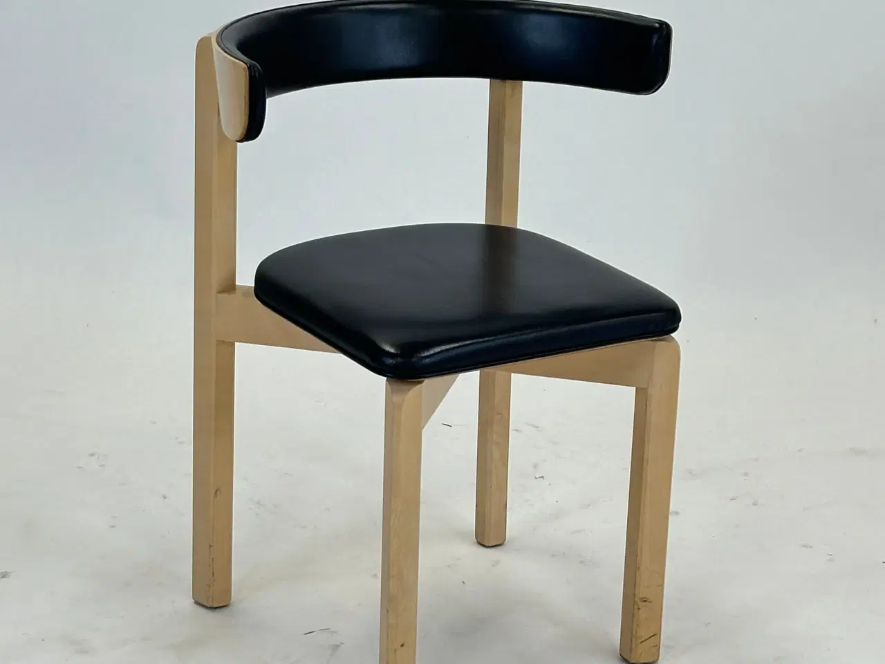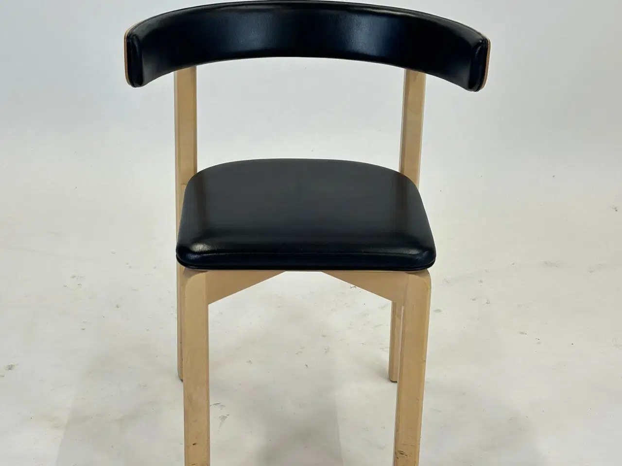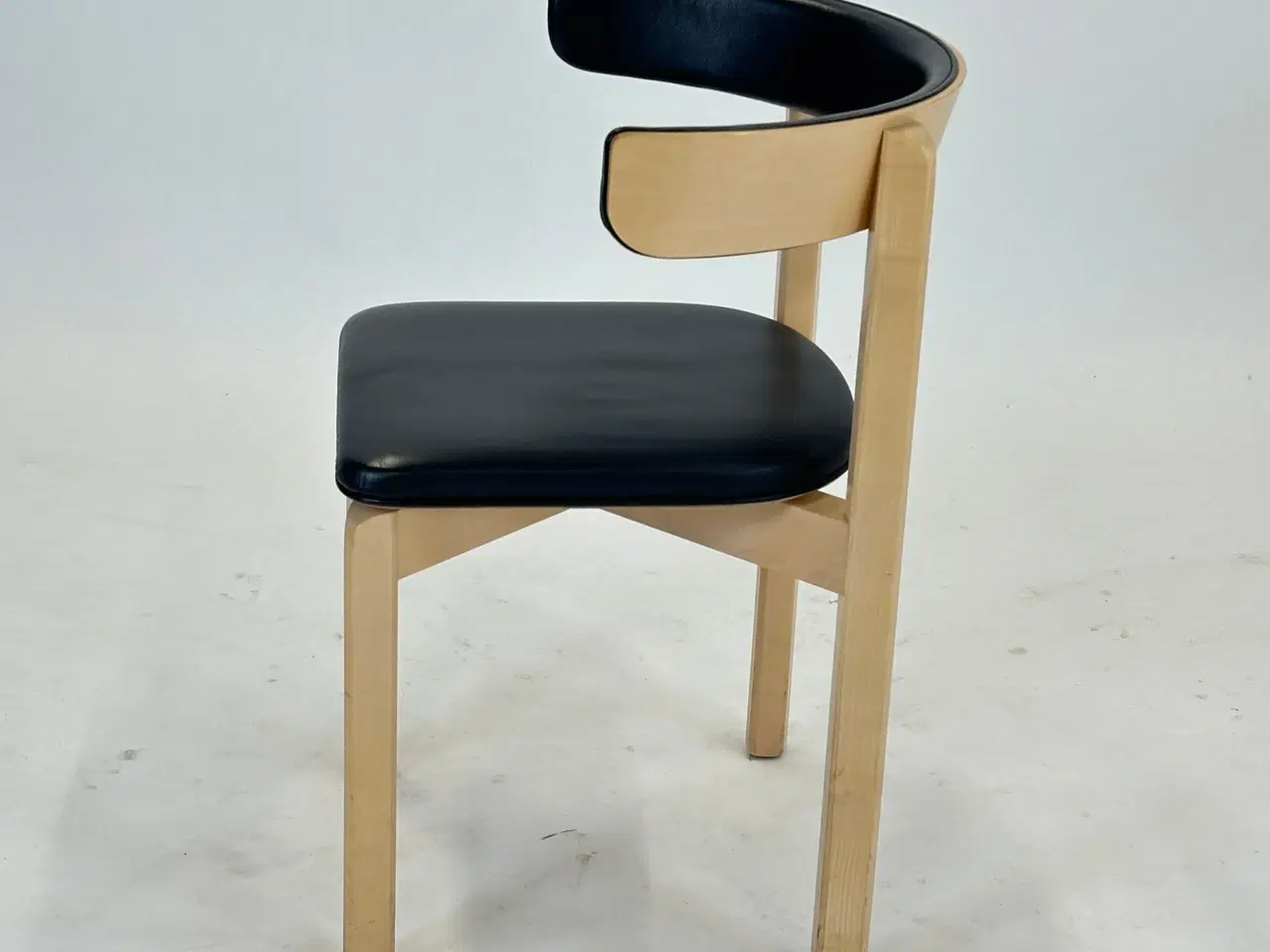 Model 5 stol af Jørgen Gammelgaard for Sorø Møbelfabrik – Dansk designklassiker med funktionel eleganceModel 5 er en ikonisk stol designet af Jørgen Gammelgaard for Sorø Møbelfabrik, der forener enkelhed, funktion og tidløs skandinavisk æstetik. Stolen er udført i lyst træ med sort polstret sæde og ryglæn i læder, som tilsammen skaber et smukt og klassisk udtryk.Det karakteristiske, buede ryglæn giver både visuel lethed og god støtte, mens den solide trækonstruktion vidner om dansk håndværk i højeste kvalitet. Kombinationen af naturlige materialer og minimalistisk form gør Model 5 velegnet til både mødelokaler, spiseområder og kontorer, hvor komfort og design går hånd i hånd.Specifikationer: ✔ Producent: Sorø Møbelfabrik ✔ Designer: Jørgen Gammelgaard ✔ Model: Model 5 ✔ Materiale: Lyst træstel ✔ Polstring: Sort læder på sæde og ryglæn ✔ Designstil: Skandinavisk minimalisme ✔ Anvendelse: Spisestol, mødestol, kantine, kontorFordele: ✅ Dansk designarv med tidløs æstetik ✅ Høj siddekomfort og solidt håndværk ✅ Klassisk kombination af træ og læder ✅ Velegnet til både private og erhvervsmiljøerDette er et brugt møbel fra en dansk virksomhed, hvilket betyder, at der i nogle tilfælde kan forekomme mere eller mindre tydelige brugsspor. Alle møbler er renset og gennemgået, så du er sikret en stol af høj kvalitet, der er klar til brug.