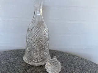 Meget flot grøn karaffel med fine stjerneformede slibninger og 6 tilsvarende glas. Har aldrig været brugt.