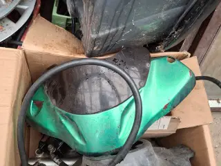 Sælger min 3 hjulet pgo T-rex. Med bakgear. Motoren og gearkassen er renoveret for 2000km siden. Alle lejer og pakdåser og pakninger er skiftet, samt lejerne på baghjulene. Den springer i gang med det samme og køre som en drøm. Denne scooter skal ikke have nummerplade, pga. Sin alder. Den køre Ca 70kmt.men jeg kan gøre så den køre lovligt inden den bliver sælges. Den har nogle brugs ridser på skærmene og mangler det venstre sidespejl. Den fik 3 nye dæk og bremse klodser/bakker for og bag for 1 1/2 år siden. Alt el virker som det skal. Bud modtages og evt. Bytte. Jeg gider ikke at bruge tid på skam bud.