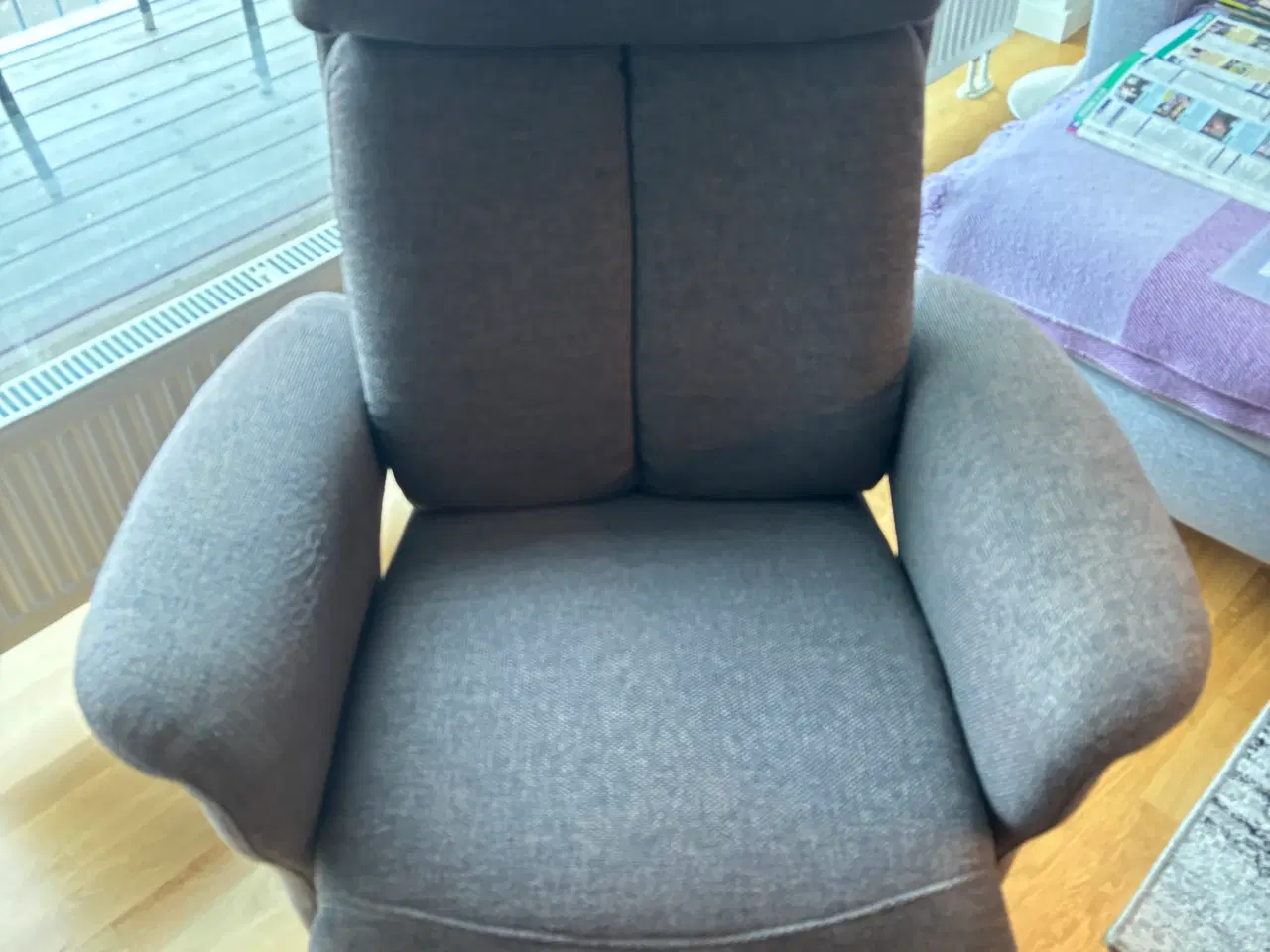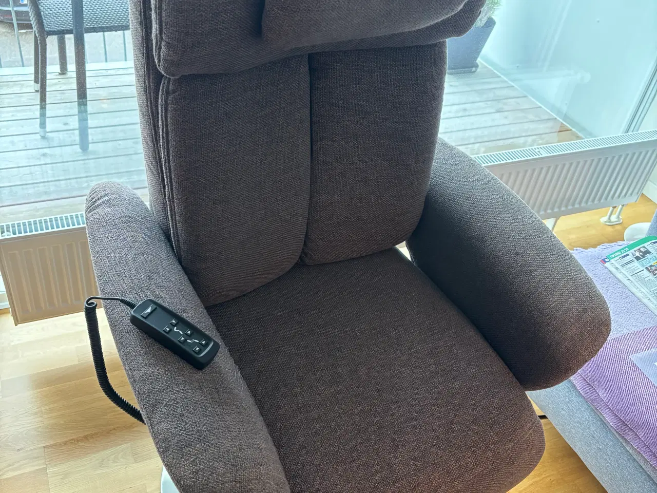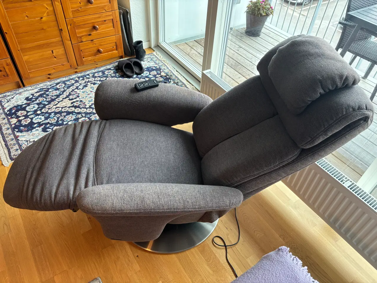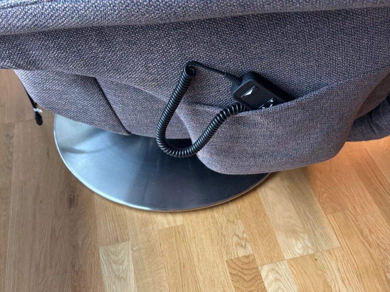Topmodel otium / hvile lænestol fra Himolla. Model Hornbæk i størrelse medium med nakkestøtte, drejefod og elektrisk betjening incl. liftfunktion. Brugsspor. Købt ny i august 2024 for 28.800 kr., sælges afhentet.
