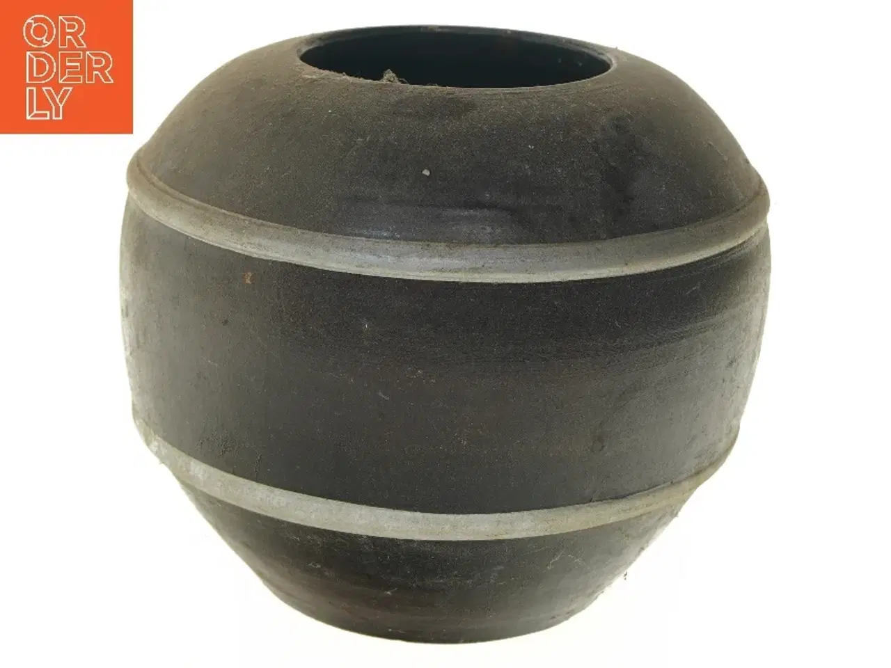 Denne genstand er en rustik vase lavet af keramik. Den har en kugleform med en åbning øverst til at holde blomster eller dekorative elementer. Vasen er primært sort og har to lysere cirkulære bånd som dekorative elementer, der går rundt om dens midtersektion. Den måler Ø 25 cm. Klik på 'Se annoncen hos forhandleren' for at se varen i vores webshop Brand: Ukendt Farve: sort Stand: 40 - Varen trænger til grundig rengøring (Se billeder) Vi sender til hele landet for 49 kr. Leveringstiden er 1-3 hverdage. Du kan også gratis hente den på vores lager på Industrivej 10 i Slangerup. Er du i tvivl om varen stadig er til salg? Klik på knappen "Se annoncen hos forhandleren" for at se den i vores webshop. Kan du se den der, er den stadig til salg Orderly er en ny måde at købe brugt på. Vi har alle vores sælgeres ting på vores centrale lager. Derfor kan du være helt sikker på at få dine ting - og du kan samle flere ting på tværs af sælgere og kun betale én gang fragt.
