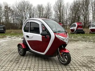 Country II 25 km/t blå FINANSIERING UDEN UDBETALING 6 måneders garanti. Gratis og uforpligtende fremvisning på adressen. Service og reparation på adressen. Brugt luksus kabinescooter med god plads til 2 personer. Kabinescooteren er udstyret med alt det nødvendige tilbehør og står i en flot blå farve. Dette køretøj er perfekt til kørsel året rundt og sidder trygt i ly for vind og vejr. Lindebjerg Country II er bygget med komfort for øje og har meget af den nyeste teknologi, som du kender fra nye biler i dag. Scooteren skal indregistreres som 'lille knallert'. Dette er inkl. i prisen. Kræver ikke kørekort. Max hastighed: 25 km/t Rækkevidde: Op til 60 km (Ved køb af ny batteripakke, + 5.000,-) Max kapacitet: 225 kg Motor: 1200W Første indreg.: 20/12/2021 Har en del skræmmer udvendigt, men virker godt mekanisk. Scooteren står i en af vores afdelinger, men husk, at du altid kan bestille en gratis fremvisning hjemme på adressen. Kontakt vores serviceteam på tlf: 63 15 00 00 og få et godt tilbud der passer lige netop til dig! Kontakt os for fremvisning af denne scooter i dit lokale Lindebjerg showroom. Brugt nr.422650