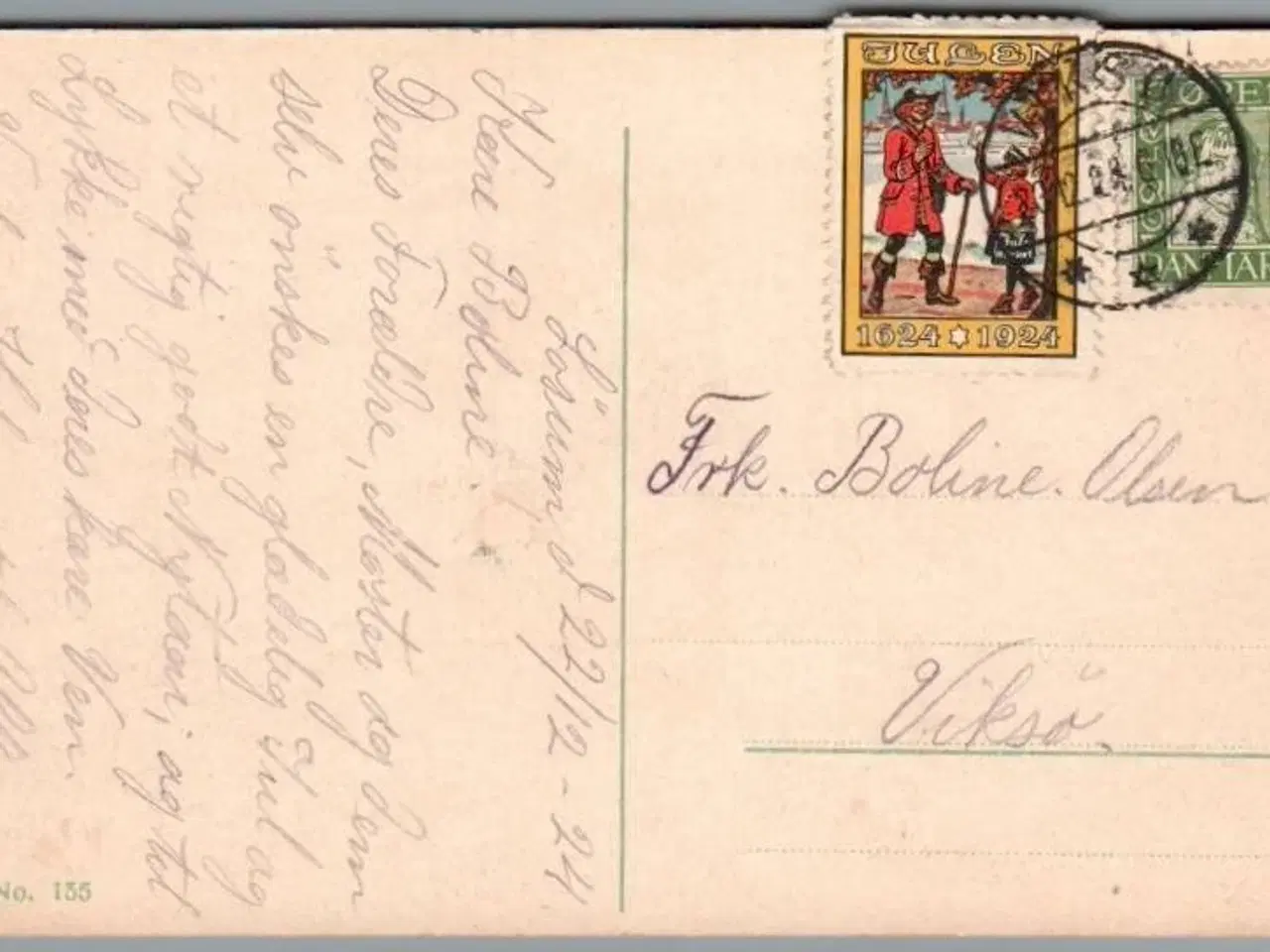Julemærke 1924 på Postkort. Stemplet 23-12-24