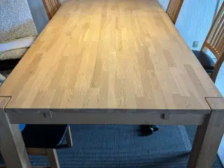 Fint lille spisebord med klap og 2 stole. Måler 70x70 cm og med klap 70x100 cm Skal hentes i Hjallerup