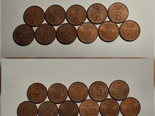 Danmark, mønter, 18x2 ØRE - Frederik IX 1952, 1954, 1956, 1957, 1958, 1959, 1960, 1961, 1962, 1963, 1964, 1965, 1966, 1967, 1968, 1969, 1970, 1971.