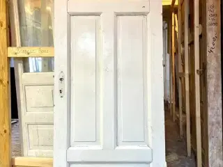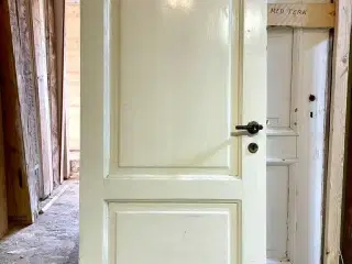 Original, lav bondehusdør med karm og bundstykke. Tre felter på begge sider. Monteret med greb i træ og messing på roset i messing. Låsekasse skal muligvis skiftes. Fremstår med nogen overfladisk brugsspor, nogle afslag og slitage nederst på karm. Døren er venstrehængt. De angivne mål er inkl. karm. Se også de øvrige døre fra samme, fynske ejendom. Bredde: 89.1 cm, højde: 196.3 cm. På lager: 1 Vi har over 6.000 vinduer og døre på lager ved Roskilde. Se derfor også vores andre annoncer eller vores hjemmeside via link her på siden. Søgeord: -------- Brugte døre Gamle døre Brugte døre Klassiske døre