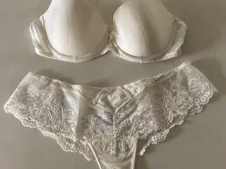 NYT Chic Rød BH sæt G-streng str. M, Trusse str. S, BH str. 75DD. 175,-kr. Er kun blevet vasket, men har ikke brugt det.