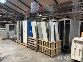 Opbevarings kasse/moduler 10 stk Mål og vægt Bredde: 80 cm Højde: 220 cm Dybde: 210 cm Øvrige mål: Mål kan variere en smule Læssehjælp: Læssehjælp efter aftale med sælgeren Udstyret med: - Der medfølger plade til front Kasserne er bygget på paller. Har været brugt som depot udlejning