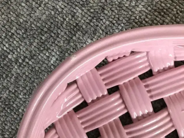Lyserød Måler: længde 32 x bredde 25 x højde 6 cm Har et lille skår på kanten ( se billede 3 )