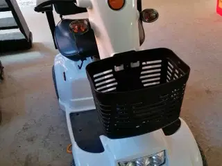 Service og eftersyn er lige foretaget. I den forbindelse er der monteret 3 nye punkterhæmmende dæk inkl. nye slanger. Batterier er af nyere dato og i topform. Der medfølger lader, 2 nøgler, frontkurv samt heldækkende overtræksgarage (se billede). Stokkeholder kan evt. indgå i prisen. Dansk betjeningsvejledning medfølger. For spørgsmål og aftale om besigt og prøvekørsel i Køge skal der ringes til Lars på 51627023. Andre former for henvendelse besvares desværre ikke. Levering på Sjælland kan aftales i forbindelse med prøvekørsel. Er annoncen aktiv, er el scooteren stadig til salg.