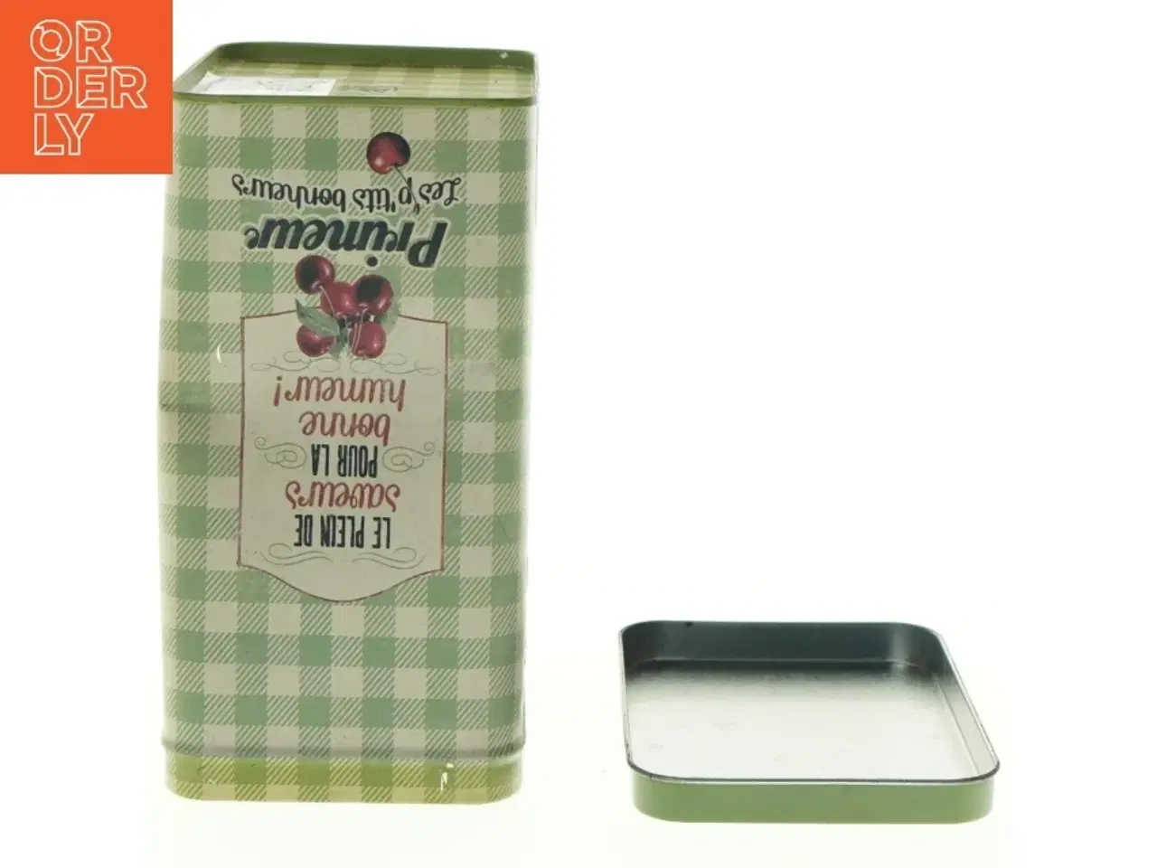 Klik på 'Se annoncen hos forhandleren' for at se varen i vores webshop En firkantet metal dåse med ternet design i nuancer af grøn. Dåsen har en aftagelig låg og er udsmykket med teksten 'SAVEURS & BONNE HUMEUR' samt et billede af kirsebær på forsiden. Kan anvendes til opbevaring af diverse smågenstande. Brand: Ukendt Farve: Grøn Stand: 60 - Har en bule Vi sender til hele landet for 49 kr. Leveringstiden er 1-3 hverdage. Du kan også gratis hente den på vores lager på Industrivej 10 i Slangerup. Er du i tvivl om varen stadig er til salg? Klik på knappen "Se annoncen hos forhandleren" for at se den i vores webshop. Kan du se den der, er den stadig til salg Orderly er en ny måde at købe brugt på. Vi har alle vores sælgeres ting på vores centrale lager. Derfor kan du være helt sikker på at få dine ting - og du kan samle flere ting på tværs af sælgere og kun betale én gang fragt.
