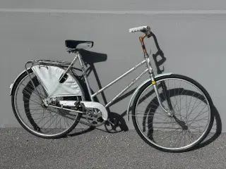 Unik blå Sally Bike herre retrocykel. Denne gamle kvalitetscykel, har et utrolig enkelt design og er helt unik. Herrecyklen er med 3 indvendige gear, støtteben, ny kæde, kædeskærm, fælgbremse på forhjulet, fodbremse på baghjul, dynamolygte som virker på forlygten og pæren er gået på baglygte, bagagebærer, størrelse 60, små revner i sadlen, næsten nye dæk, skærme til begge hjul, højt styr, stelnummer WJKH64108Z. Denne blå retro cykel er i fin stand, med lidt patina og brugsspor, og køre rigtigt fint. Så er du til grøn energi og bæredygtighed, er dette transportmiddel lige noget for dig. Hvis du også mener, at offentlig transport er for dyr, og hvis du nyder frisk luft på dine kinder og gratis motion, så er denne unikke blue bike / bicycle det perfekte valg for dig, og kan blive din herrecykel for 3.600 kr.