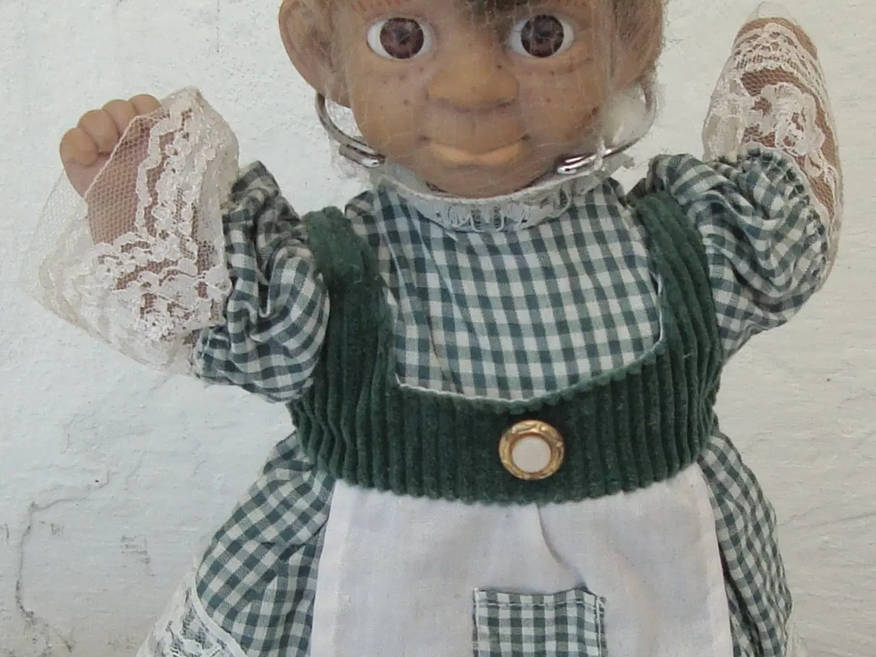 Dukke. Aldrig brugt kun stået til pynt. Ca. 40 år gammel. Ved forsendelse Betaler køber ALLE udgifter til porto ellers afhentes på adr.