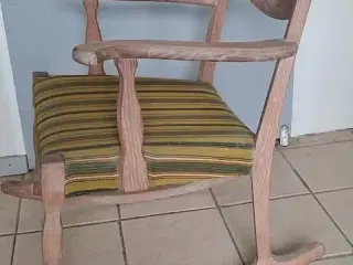 Gammel rokkestol i mørkt træ - træværk intakt , mangler nogle nitter i stoffet -- afhentningspris