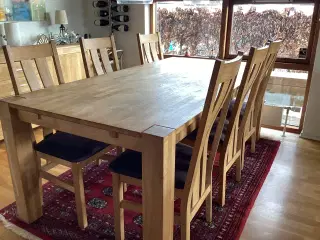 Mørkt spisebord bejset edeltræ med 5 stole. Sælges grundet flytning - kan afhentes i Brabrand Ca str. 180 cm x 80 cm bred