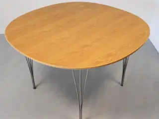 Et nyt flot spisebord med cirkulær plade af lakeret fineret egetræ, stel med runde ben af massivt egetræ. H. 73 L. 120 cm. (264) Kr.1.995,- Kan leveres mod betaling af fragten.