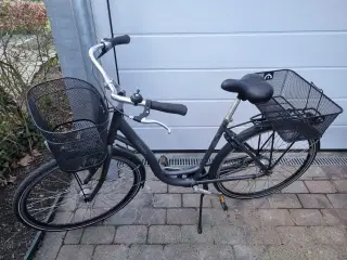 "Ny" cykel til foråret? Denne citybike har et stel på 48 cm og passer til personer mellem 155 - 170 cm i højden. Min søn har brugt den fra 6-8 klasse. Cyklen er 3 1/2 år gammel (kvittering haves) og den har kørt upåklageligt. - Shimano Claris 8 gear - Skivebremser for/bag - Ree-light Nova lys for/bag (se www.reelight.dk) - Godkendt lås fra Innergy - Stål MTB pedaler - Helt nyt forhjul (kr. 899,-) - Reflekser - Støtteben - Intakt skærmsæt - Ringeklokke - Holder til drikkedunk - Bagagebære Enkelte skrammer på stellet (se billeder), lille hul på siden af sadel (se billede).