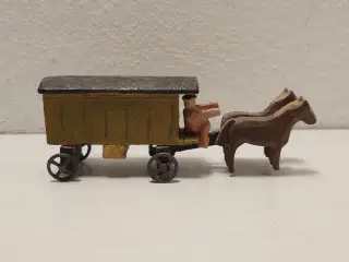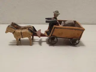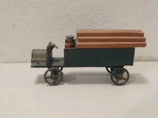 Miniature lastbil med passager og chauffør i træ Håndlavet tysk folkekunst/bondesløjd fra Erzgebirge egnen og fra starten af 1900 tallet. I god stand, men med almindelige aldersrelaterede brugsspor. Længde ca 6cm.