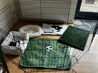 Giv din hundehvalp tryghed, sikkerhed og komfort med dette udendørs hundebur. Dette alsidige, robuste hundebur har flere anvendelsesmuligheder: Leg, motion, træning eller bare til at holde dine hunde trygge og sikre. Det vil være det perfekte legeparadis til dine venner med pels! Dette store hundebur giver masser af plads til motion, mens trådnettet omkring buret forhindrer unoder eller uventede ulykker, samtidig med at det muliggør ventilation. Dette hundebur i høj kvalitet er slidstærkt og bygget til at holde takket være den robuste og kraftige konstruktion i galvaniseret stål. Det medfølgende tag, som er lavet af 100 % polyethylen, er brandsikkert og UV-beskyttet, og det giver beskyttelse mod sol, regn, sne samt andre vejrforhold. Den hængslede dør giver dine hunde ekstra beskyttelse takket være det låsbare system. - Farve: Sølvfarvet - Materiale: Galvaniseret stål, stof (100 % polyethylen) - Produktmål: 600 x 300 x 150 cm (L x B x H) - Mål, låge: 45 x 91 cm (B x H) - Med tag - Aflåseligt låsesystem - Montering/samling påkrævet: Ja