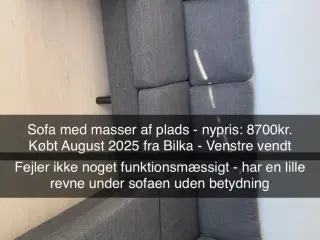 Beige sofa med chaiselong Mål: L: 300 cm D: 93 cm/160 cm H: 74 cm Sofaen er lavet af koldskum med fiberfyld Købt for ca 1,5 år siden Nypris 23.999