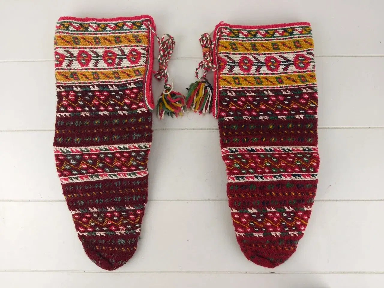 Anderledes hjemmesko / strømper som formodentlig er håndstikket. Tænker de har østeuropæisk oprindelse. Som det fremgår af billederne er den i fin stand.
