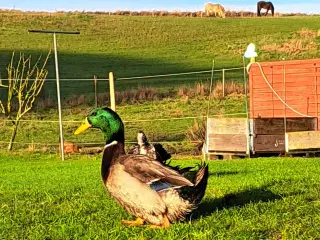 Moskusandrik sælges. Rolig, nysgerrig moskusand med smukke farver, han changerer i grønt og rødt i de sorte fjer. Han er fra maj 2025 og er blevet kønsmoden. Bor ved Ørnhøj