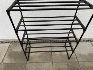 Metal skoskab i sort - 5 låger Den har gode år endnu som skoskab - den stang der holder de 5 låger indvendig er defekt- men alle låger kan åbne og lukke Deraf billig pris Røgfri hjem