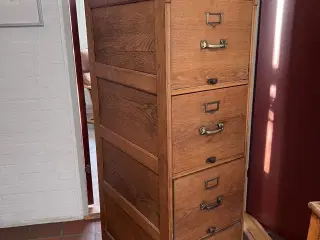 Gammelt flot chatol i mørkt egetræ Overdelen kan tages af så underdelen kan bruges som særskilt møbel Der er 3 skuffer, 3 hylder og 2x3 små skuffer og et lille rum i midten med nøgle bag skriveklappen Højde 202cm Bredde 113cm Dybde underdel 52cm Dybde overdel 28cm Prisen er til forhandling. Kom et bud