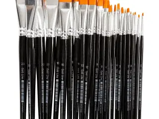 Nylon Pensler - Sæt med 30 stk.Opdag vores alsidige sæt af nylon pensler, der inkluderer størrelserne 0, 2, 4, 8, 12, 16 og 20. Med en længde på 17-21 cm og bredde fra 2-22 mm, er disse pensler perfek