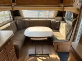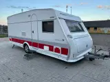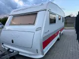 Den kommer med masser af udstyr: totalvægt 3500 kg, rammevinduer, premium dør med vindue, elektrisk trappetrin, slideout seng, Isofix, gasalarm, Lithium batteri, Inverter, solceller 180W, undervognsbehandling, udendørs bruser, Thule Lift cykelholder, Tertek WIFI antenne, Wifi router og 3500 kg total .