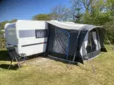 Ventura luftfortelt til campingvogn, nemt at sætte op og pakke sammen. Bredde: 300 cm., dybde: 260 cm. Front kan lynes af så det kan bruges som et åbent solsejl. Er opbevaret tørt. Kun brugt 2 gange i 2025 i alt ca. 3 uger - er som nyt.
