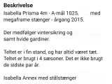 Kampa Anneks høj model med indertelt samt Kampa Anneks Vinterhave/Udestue med gulvtæppe sælges. Årgang 2018, men kun brugt meget få gange Passer bl.a. til Kampa Rally Air Pro Sælges grundet andet behov. Prisen er pr styk, og sælges samlet eller hver for sig-