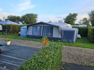Penta fortelt med mega stænger og helt nye gardiner. Købt med 3 års garanti. Fejler intet og ser ud som nyt. Brugt 6-8 uger i 2022 og 2023. Brugt 14 dage i 2024 og ikke i 2025. Der er ingen billeder hvor forteltet er sat op, da vi håbede på at vi selv kunne fortsætte med at campere i vores Kabe og med det dejlige store fortelt. Gulvtæppe følger med, vognskørt og hjuldække følger med