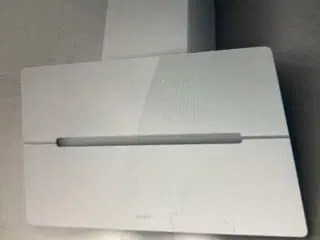 Hvid væghængt emhætte med kulfilter