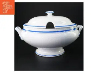 Hvid og blå porcelænssuppe terrin (str. 29 cm)