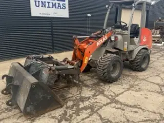 stærk og kompakt minilæsser med lav indstigning løfter 1000 kg med brede hjul 16/12- 12,arbejdslys 2 frem og 1 bag for mere info ring på tlf 81402750