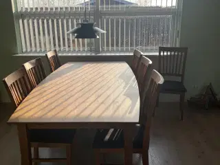 Spisebord med stole og bænk