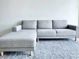Lys grå 3-personers sofa med chaiselong — 1200 kr