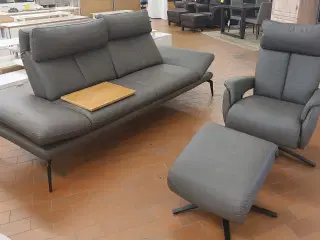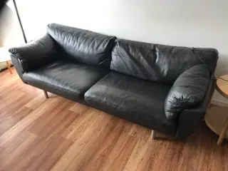 2 sorte læder sofaer og 2 puffer